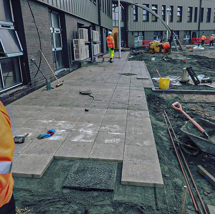Cumbria county council paving works-1120sqm of screed bedded 450 x 450 buff pavers